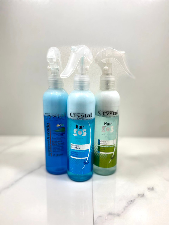 اسپری مو دوفازی کریستال در سه مدل روغن ماکادمیا،آرگان و پرو ویتامین